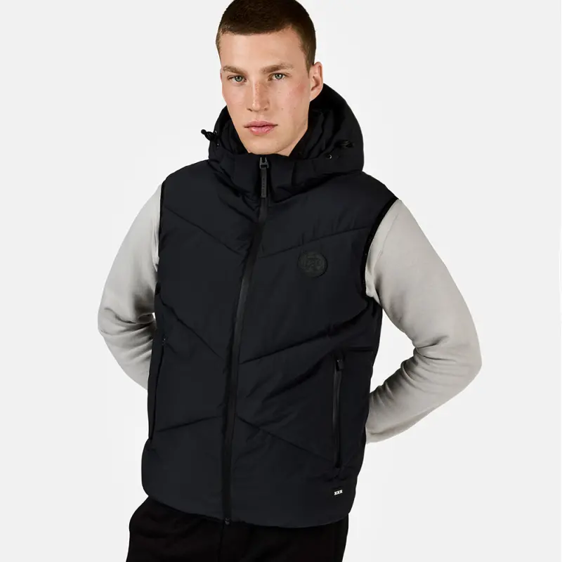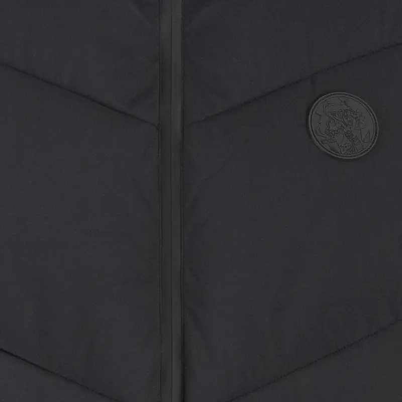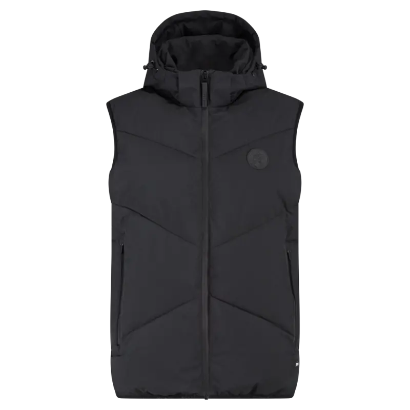 This black Ajax body warmer has a modern fit and features the iconic Ajax logo on the chest. The lightweight lining keeps you warm, while the high collar and sturdy zip provide extra protection against wind and cold. The practical side pockets complete the design, so you always have your essentials to hand.