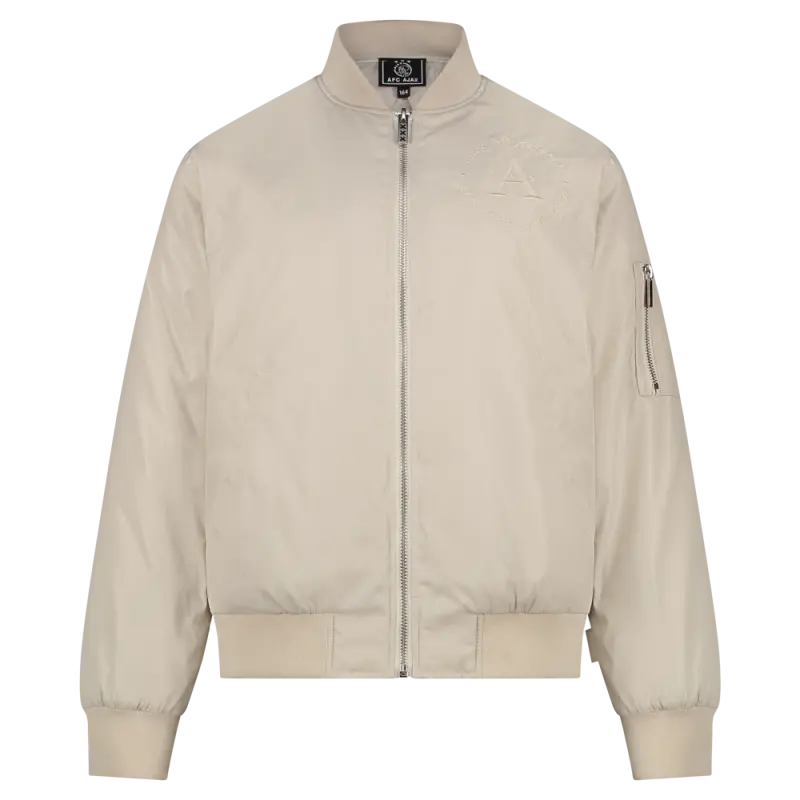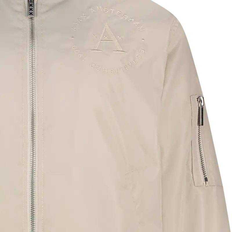 Make a statement with this ecru bomber jacket, the perfect combination of sporty class and modern design. This jacket is designed for the fan who wants to proudly represent Ajax everywhere, both on match days and in everyday life. The light ecru colour gives a sophisticated, timeless look.