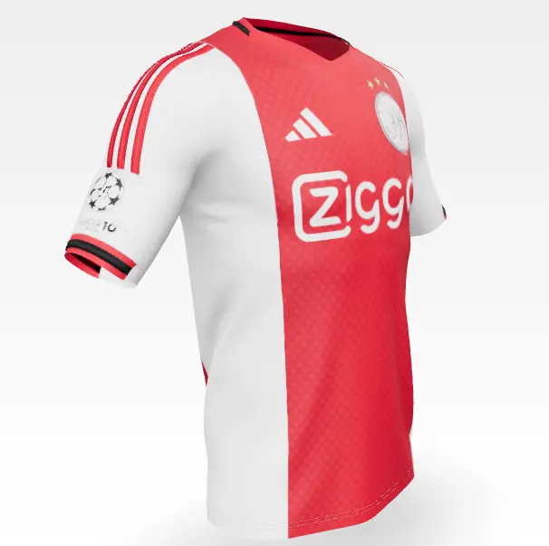 Our new home kit for the 25/26 season is available starting today. The shirt design is, as always, white-red-white and brings back the classic logo on the chest. A subtle pattern of red crosses runs through the red stripe, and on the back, a small banner pays tribute to 750 years of Amsterdam.