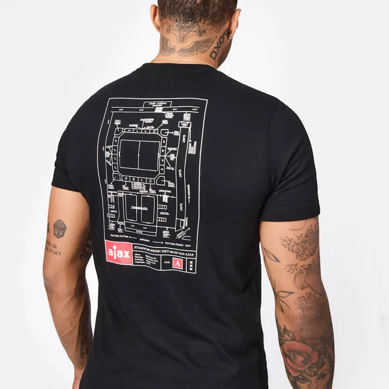 Carry a piece of history with you with this exclusive Ajax t-shirt! The back features the beautiful design of the legendary De Meer stadium, home of Ajax from 1934 to 1996. A perfect choice for any fan who wants to honour the club’s rich past.