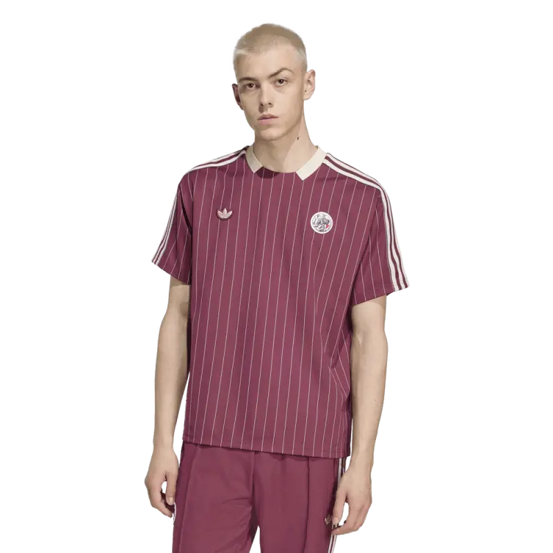 The embroidered classic logo of Ajax is supported by the shirt design by adidas Originals with retro stripes and collar.