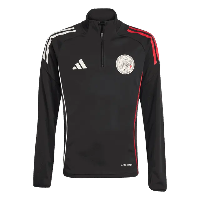 The Ajax Training Top 25/26 has a half-zip and long sleeves. The adidas stripes on the shoulders are red on one side and white on the other. For optimal freedom of movement, the top is tailored with a fine stretch.