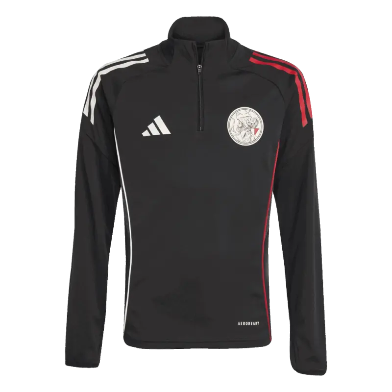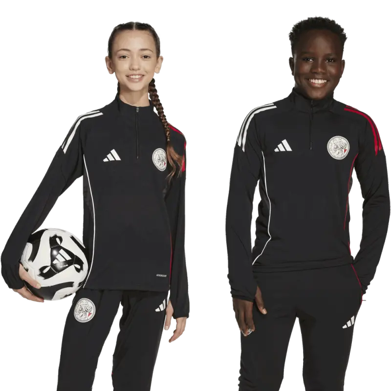 The Ajax Training Top 25/26 has a half-zip and long sleeves. The adidas stripes on the shoulders are red on one side and white on the other. For optimal freedom of movement, the top is tailored with a fine stretch.
