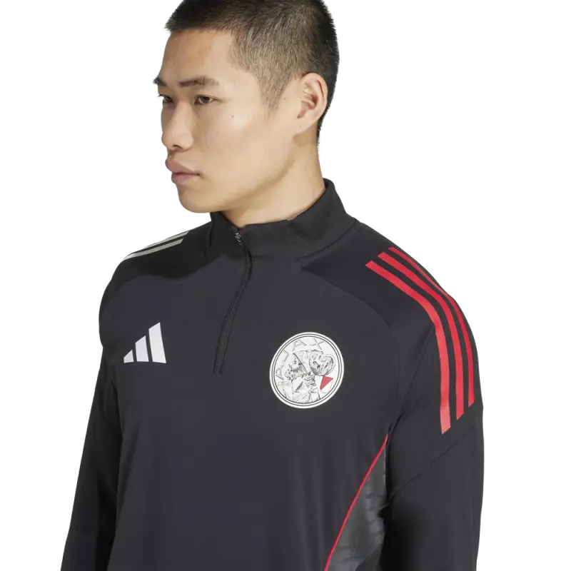 The Ajax Training Top 25/26 has a half-zip and long sleeves. The adidas stripes on the shoulders are red on one side and white on the other. For optimal freedom of movement, the top is tailored with a fine stretch.